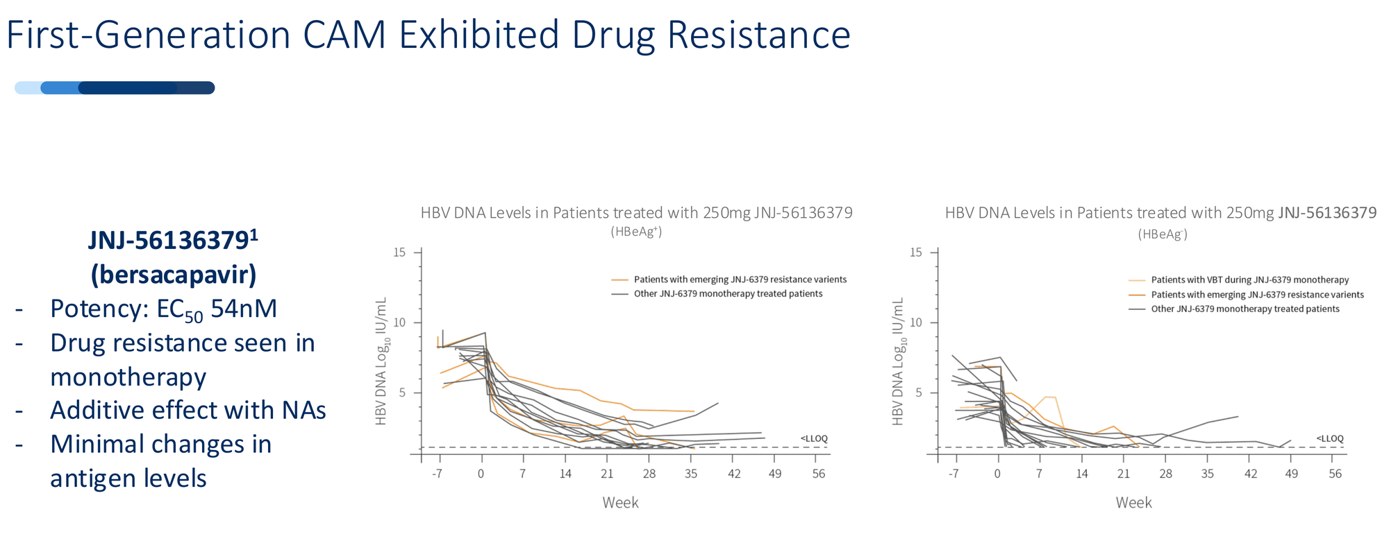 The resistance problem hit fast. JNJ-56136379 (bersacapavir) - Janssen's lead CAM with backing from one of the world's largest pharmaceutical companies - showed strong initial suppression. Within months, patients began developing resistance mutations. The virus adapted. Suppression faded. The program was discontinued.