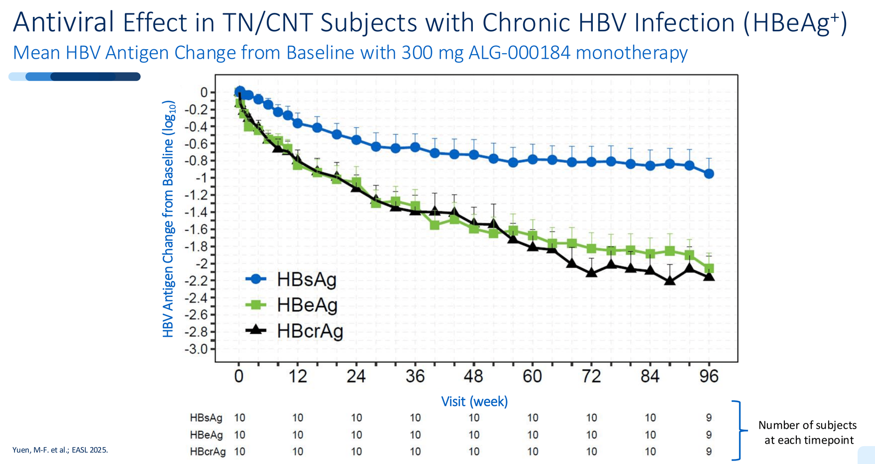 This isn't incremental improvement. Tenofovir barely moves these markers. Bersacapavir showed minimal antigen impact before resistance hit. ALG-000184 is doing both: complete suppression and meaningful antigen decline simultaneously.