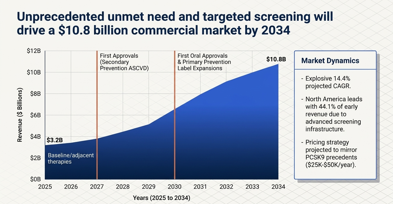 If pelacarsen reduces cardiovascular events in 8,323 patients over years of follow-up, it will prove that Lp(a) is a validated, actionable therapeutic target — and unlock a cascade of consequences: FDA approval of the first Lp(a)-specific drug, a wave of physician screening adoption accelerated by the new AHA guidelines, insurance coverage expansion, and commercial validation that signals to the market that every Phase 3 program behind it is worth its investment.