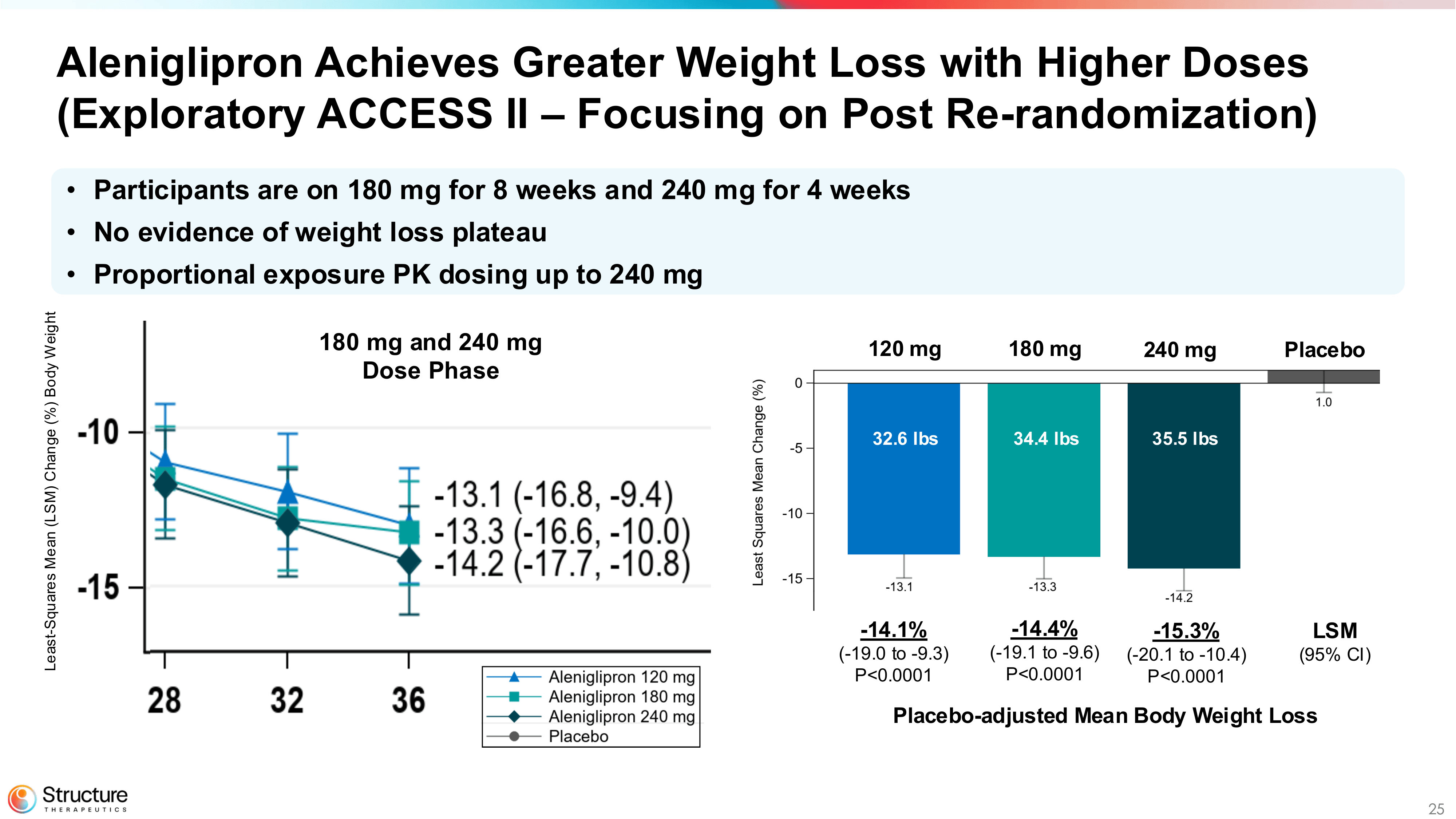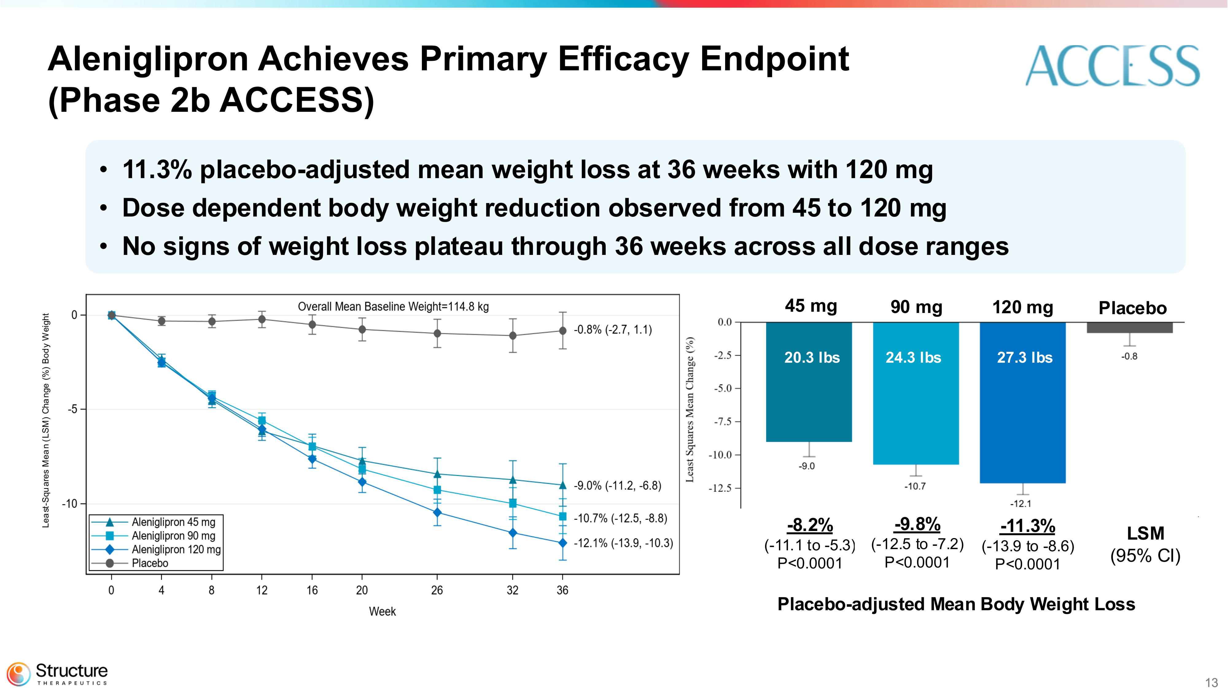 In the Phase 2b ACCESS study and the exploratory ACCESS II study, their oral small molecule Aleniglipron posted numbers that demand attention: