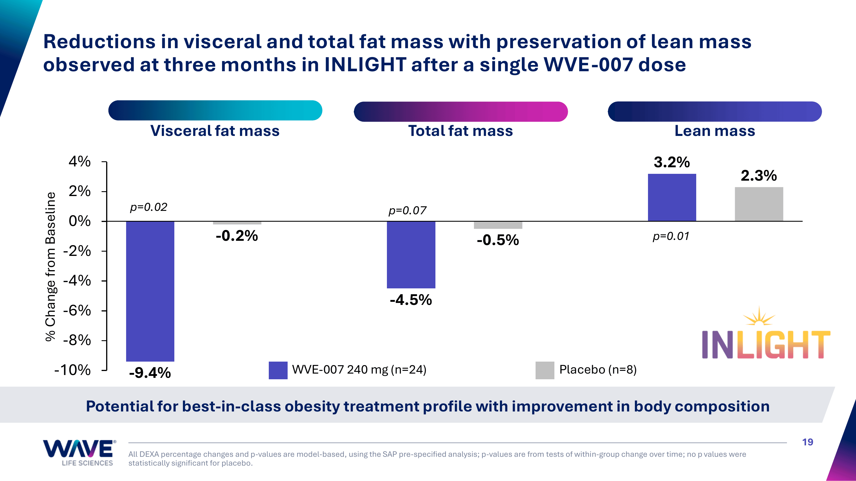 In the Phase 1 INLIGHT trial, WVE-007 (an RNAi therapeutic targeting INHBE) delivered a "holy grail" result that no GLP-1 has perfectly achieved: